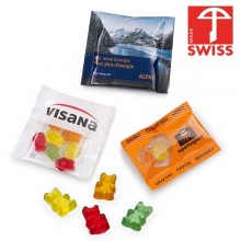 Unsere Leidenschaft für Sie! Bei uns dreht sich alles um die süsse Verführung von Gummibärchen und Fruchtgummi mit Logo – eine Leidenschaft, die wir gerne mit unseren Kunden teilen! Täglich sorgen unsere engagierten Mitarbeiter in der Mogulanlage dafür, dass die unterschiedlichsten Gummibärchen-Sorten und -Varianten frisch produziert werden. Ob klassische Gummibärchen oder kreative Sonderformen – Ihrer Fantasie sind keine Grenzen gesetzt! Individualität in jedem Bissen: Gestalten Sie Ihre Werbung einzigartig! Mit einem Fenster in der Verpackung verleihen Sie Ihrer Fruchtgummi-Sonderform zusätzlichen Ausdruck und machen sie zum echten Hingucker. So bleibt Ihr Produkt nicht nur im Gedächtnis, sondern spricht auch die Sinne Ihrer Kunden an. Frisch zubereitet, das heisst: Egal, ob Sie kleine Auflagen für ein exklusives Event oder grosse Mengen für eine Firmen-Veranstaltung, Ausstellung oder Konferenz benötigen – wir produzieren frisch nach Ihrem Bestellungseingang. Qualität ist unser oberstes Gebot, und das garantieren wir mit der Swiss-Made Armbrust. Vertrauen Sie auf unsere Erfahrung und Leidenschaft für Fruchtgummi, um Ihren Kunden ein unvergessliches Geschmackserlebnis zu bieten.